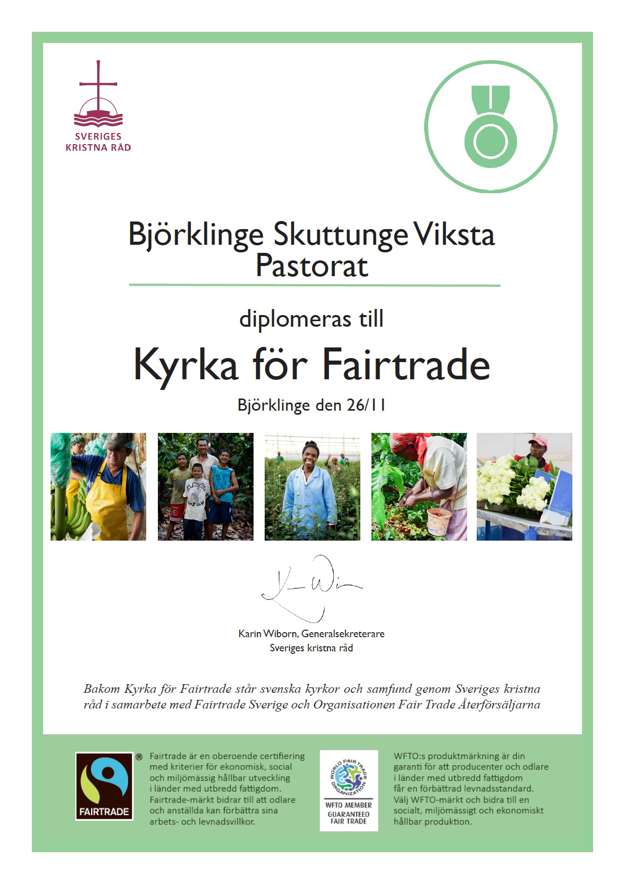 I samband med mässan söndag den 26 november i Björklinge kyrka blev vi Fairtradediplomerade. Efteråt bjöd vi naturligtvis på Fairtradefika med hembakat.