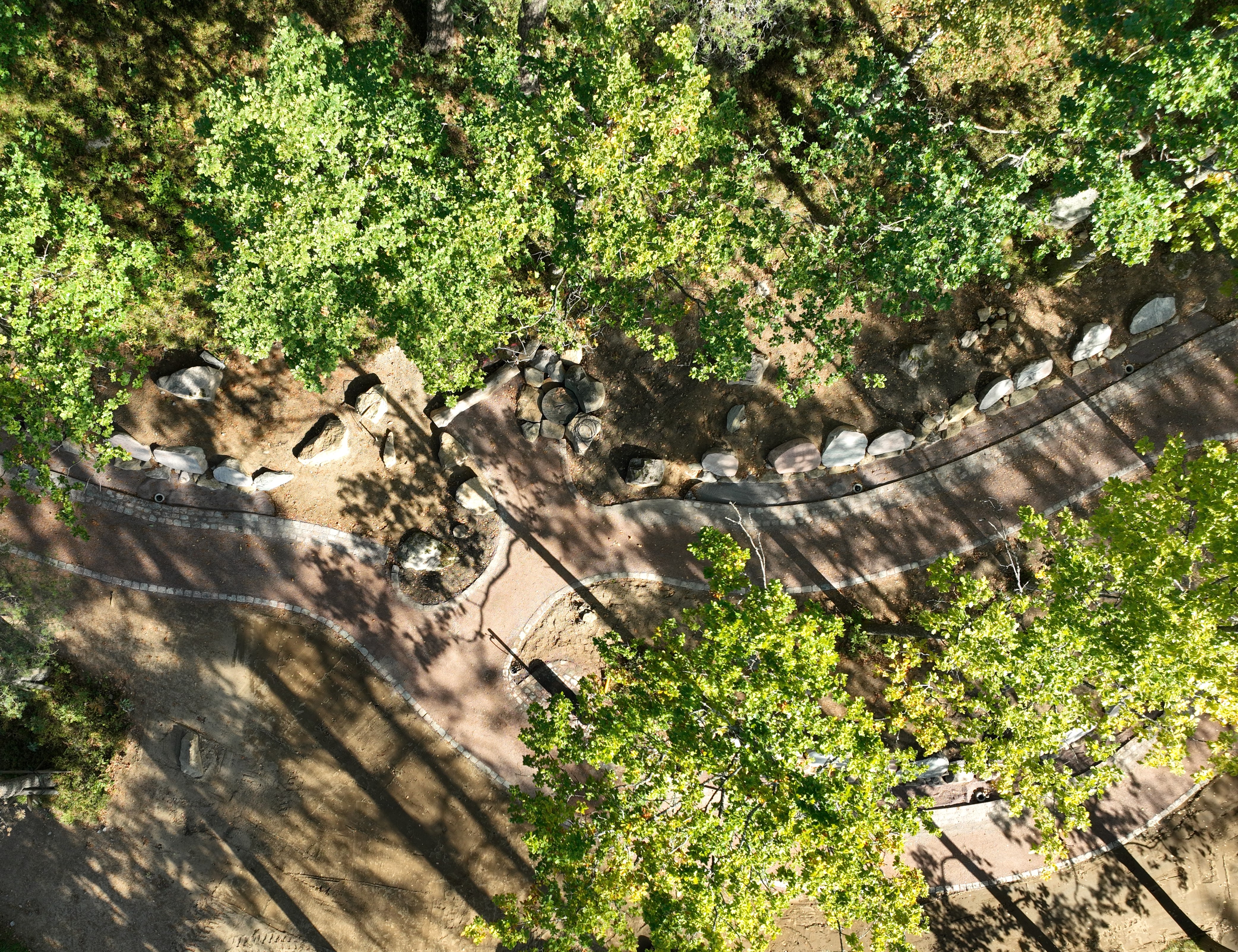 Den slingrande grusgången som följer terrängens naturliga lutning upp längs berget kantas av stenar för namnplattor och smyckningsytor för levande ljus och snittblommor. Utmed grusgången finns sittplatser där besökarna erbjuds vackra utblickar åt olika håll och det finns även en minnesbrunn. Smidesportalen, som är ingången till kvarteret Viloskogen, är gjord av smideskonstnären Therese Engdal.