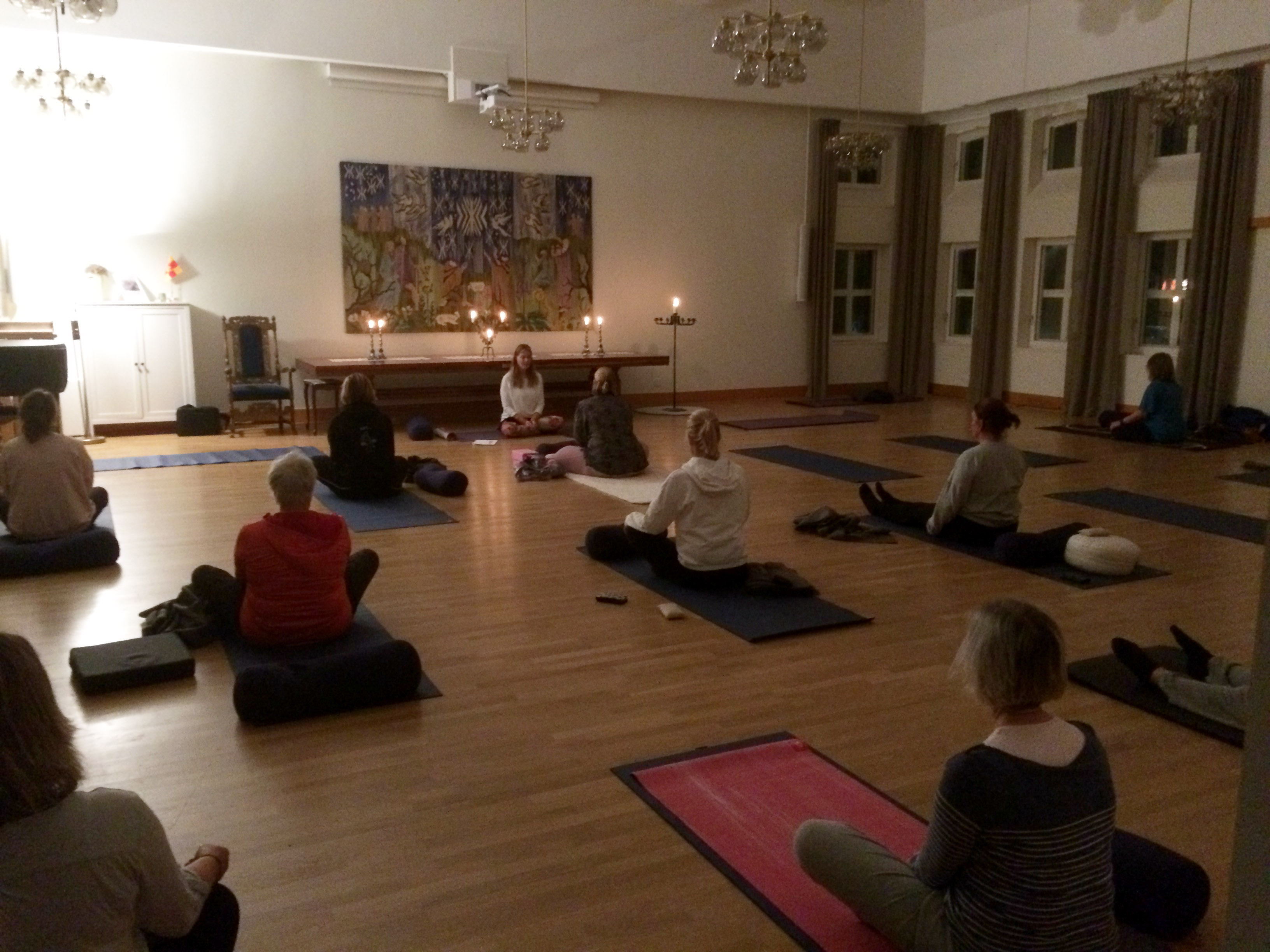 Vi utför enkla fysiska övningar sittande och liggande på golvet med hjälpmedel som bolster och filtar. Varje position hålls i 3-5 minuter med strävan att slappna av så mycket vi kan och låta gravitationen göra jobbet. Avslappningen gör att vi kommer åt bindväv, ligament och skelett, vilket oftast leder till att vi blir rörligare i kroppen.