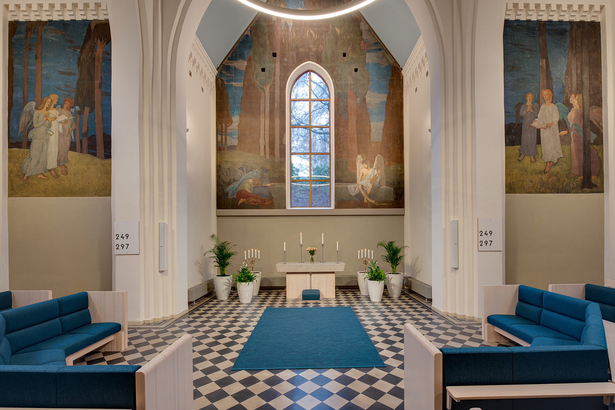 Bänkarna har fått ny klädsel, väggar och tak ny färg och i taket hänger en ny cirkelformad lampa med strömsnål led-teknik. Orgelläktaren är också omgjord. Det finns flera förändringar som inte är så påtagliga som dränering och el- och teknikstyrning. En ny kransgård finns också.