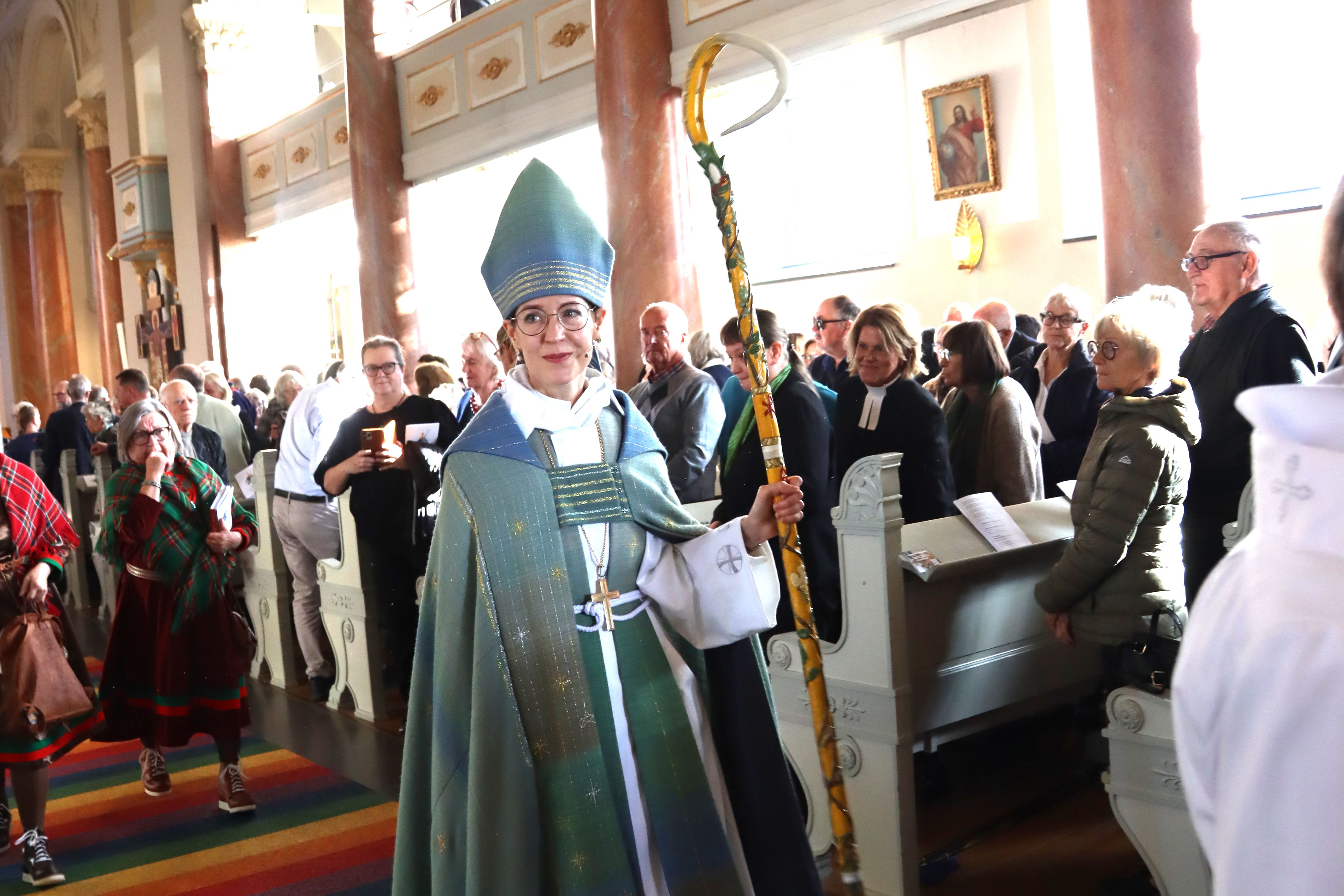 Så var det med en varm och inbjudande gudstjänst som Härnösands stift tog emot sin nya biskop. Gudstjänsten inleddes med mottagningsceremonin som leddes av domprost Kent Nordin. Domkyrkan var i stort sett fullsatt och det märktes gudstjänstdeltagare från många olika platser i stiftet.