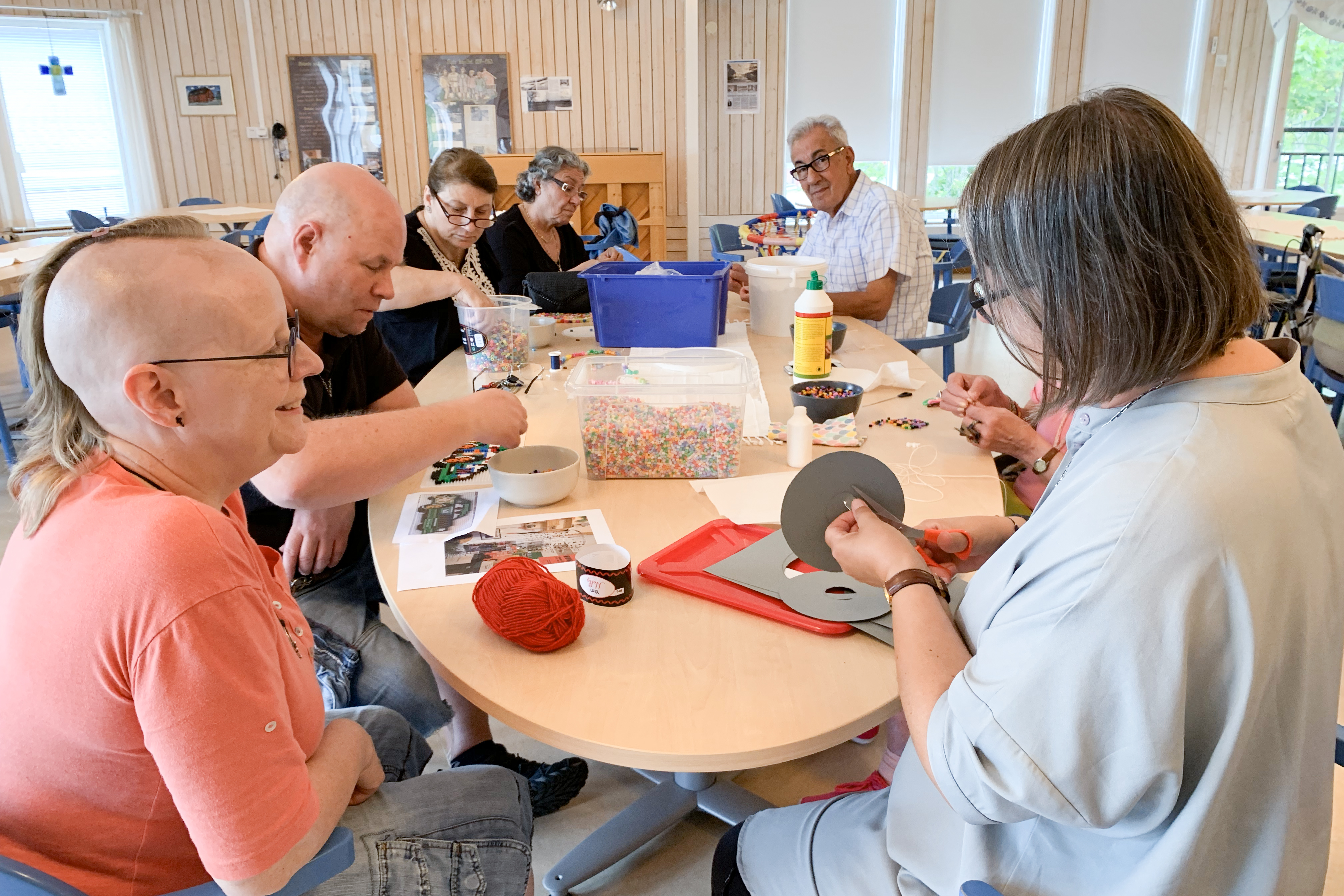 Vi träffas onsdagar 14.00-16.00 precis som vi är och mår just den dagen. Vi pysslar, pratar, fikar, handarbetar eller något annat trevligt. Ibland blir det lite extraprogram kring något tema. Gratis. Ingen anmälan. För alla åldrar.