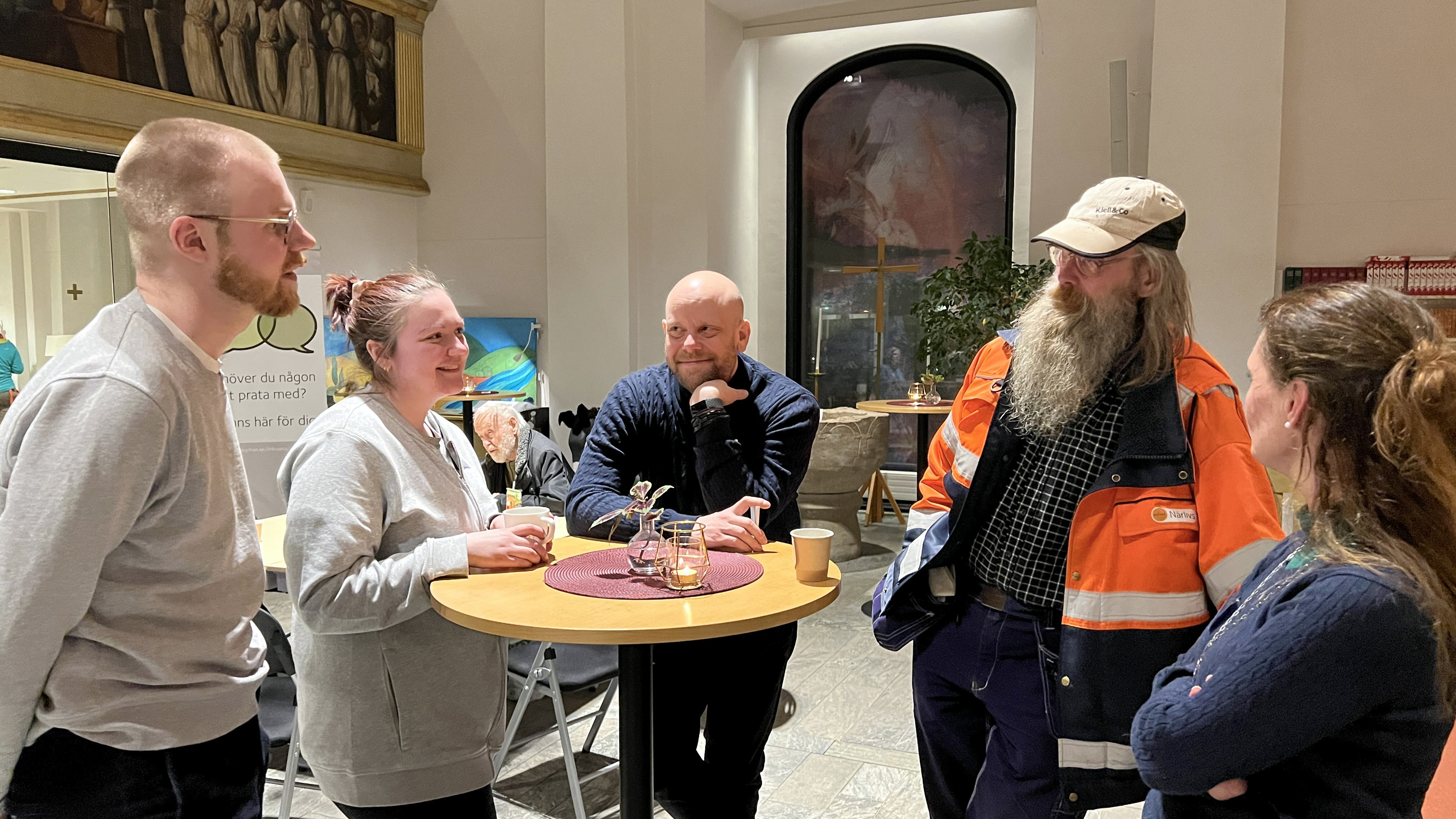 – Vi är även ute och vandrar på stan, fortsätter Roger. Det är mycket människor i rörelse, speciellt vid tillfällen som skolstart, skolavslutning och valborg. Många människor kan sakna en trygg plats. Det förekommer en del fylla och påverkan, och då kan man lätt hamna i en utsatt situation. Att vi som kyrka är där skapar trygghet och är ett sätt att visa omsorg om vår medmänniska.