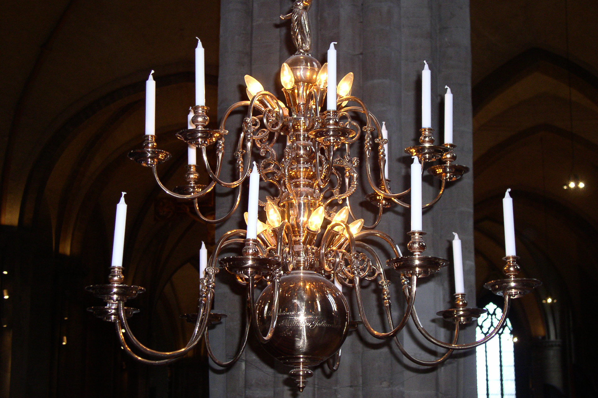 Förteckning över ljuskronor i Linköpings Domkyrka, placering och inskriptioner.