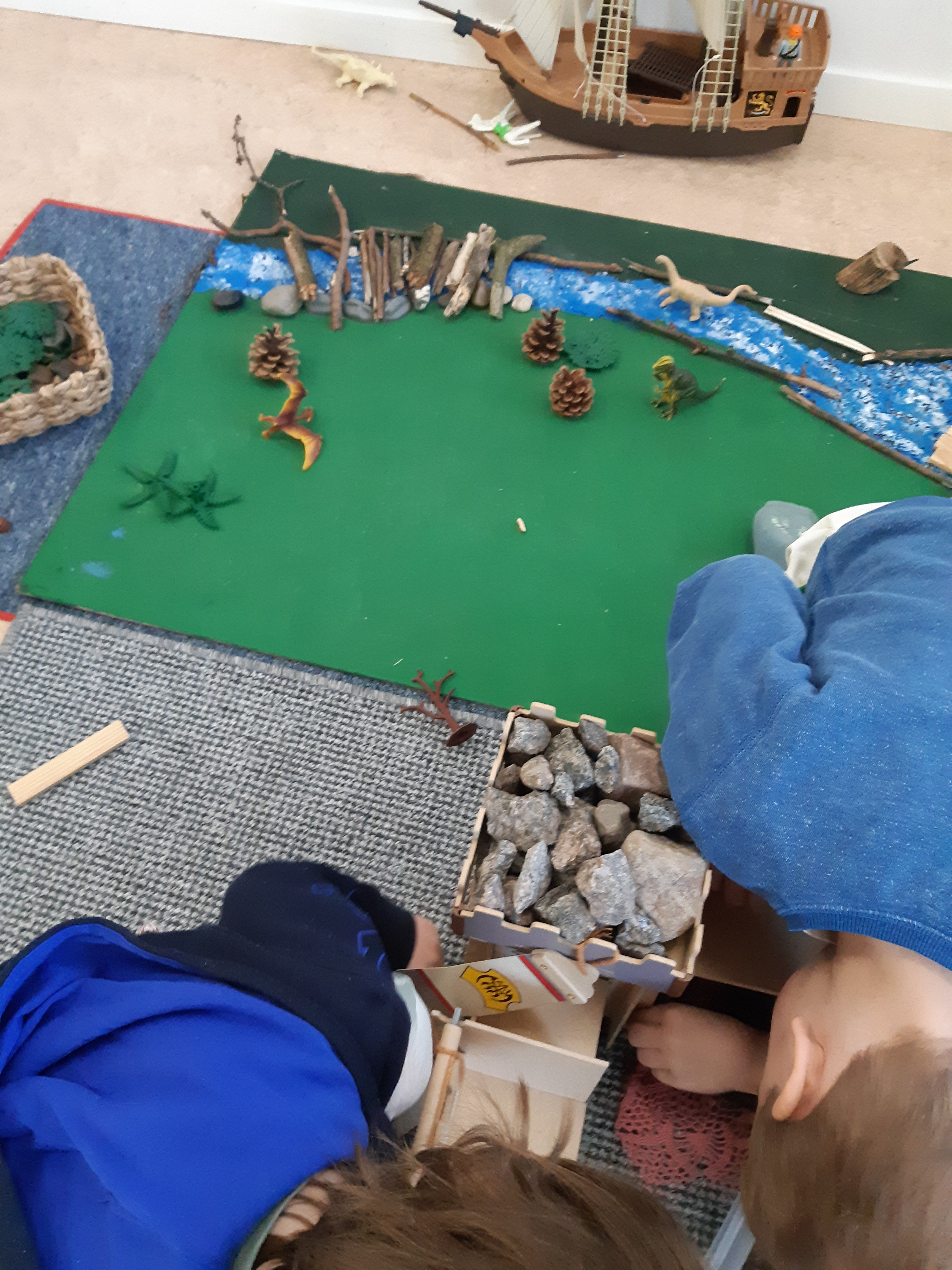I de olika lekmiljöerna har vi sett att lärande skett och att lekarna utvecklats. Detta har varit både inom- och utomhus. I konstruktionsleken har vi sett att barnen gått från att bygga till att planera, bygga upp och använda sig av rekvisita såsom djur, playmobilfigurer och andra leksaker. Barnen har samtalat kontinuerligt i leken och kommit fram till hur leken ska utvecklas. Vi har vävt in fakta om Vasaskeppet och Titanic, då det visades intresse för det. I rolleken gjorde vi om miljön efter barnens önskemål. Det blev en trollskog med träd, lianer, stenar och spindlar. Här har fantasin fått stort utrymme och det har blivit lekar om troll, kojbyggen och gömmor för att vildvittrorna inte ska hitta dem. På gården har vi fokuserat mer på regellekar och vi har kunnat se att barnen blivit förtrogna med speciellt leken Under hökens vingar kom. De har bjudit in de