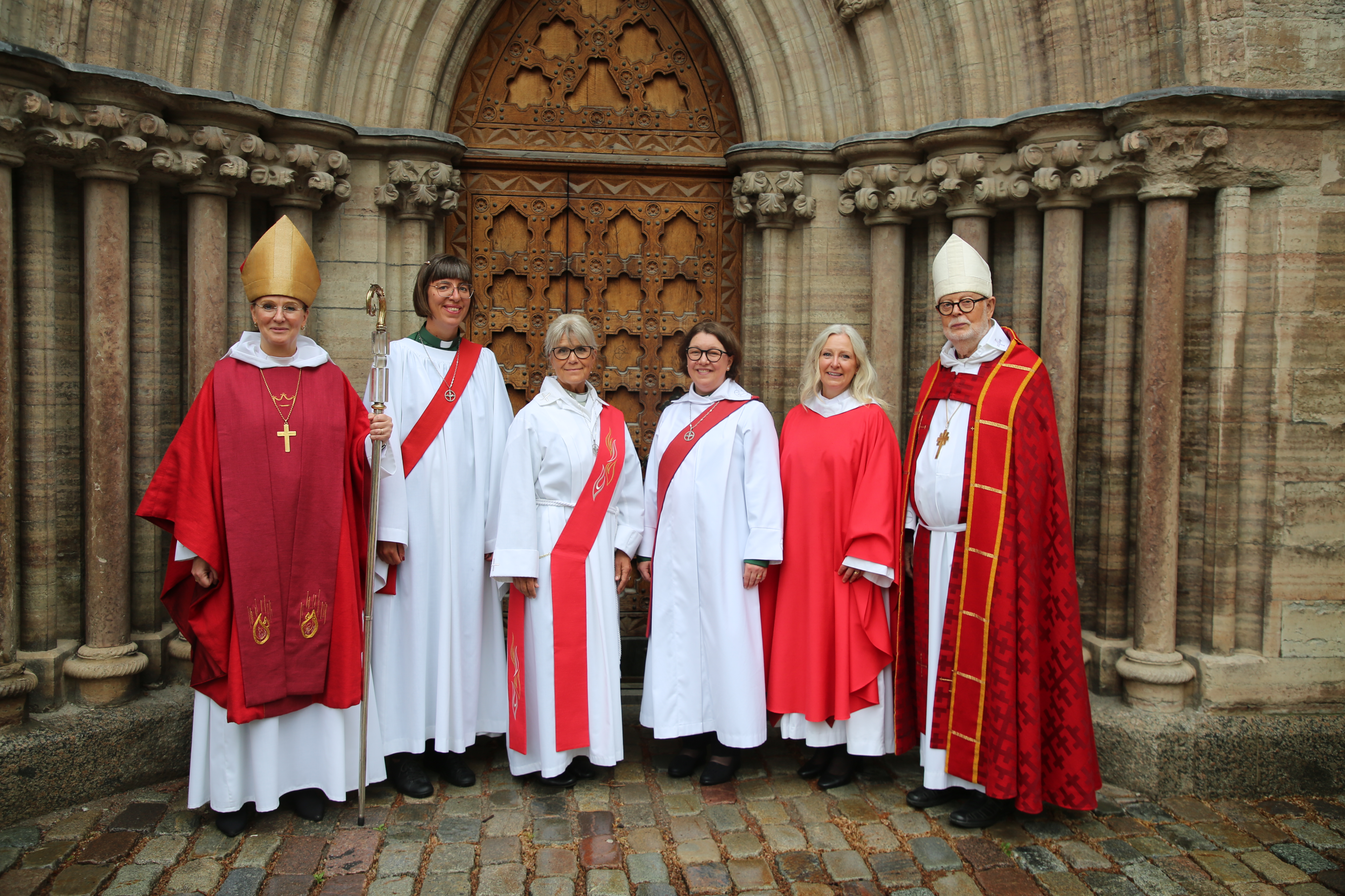 Ett välsignat regn föll över Linköping när biskop Marika vigde diakonerna Anna-Sophie Aamand, Irma Hermansson och Sandra Andersson samt prästen Catharina Linderoth till tjänst. Inne i domkyrkan var det precis så varmt som det brukar vara på vigningarna i juni. Men tack och lov finns agendor att fläkta sig med – eller den handfläkt som Irma Hermanssons assistent Christina Holmer, präst i Tranås pastorat påpassligt tagit med sig.