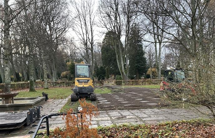 Gravstenarna hanteras med stor varsamhet – de lyfts tillfälligt upp och återplaceras på samma plats när marken jämnats till. De gravsatta urnorna påverkas inte av arbetet, eftersom avjämningen endast görs i ytskiktet.
