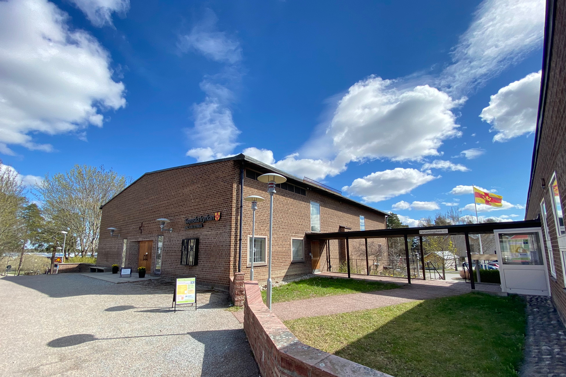 I anslutning till kyrkan ligger församlingshemmet med sina rymliga lokaler för församlingens olika verksamheter – församlingssal, teater, barnlokaler, kyrktorg, innergård, mm. Här finns caféverksamhet på vardagar. På bottenvåningen sitter pastorsexpeditionen och pastoratets kansli.