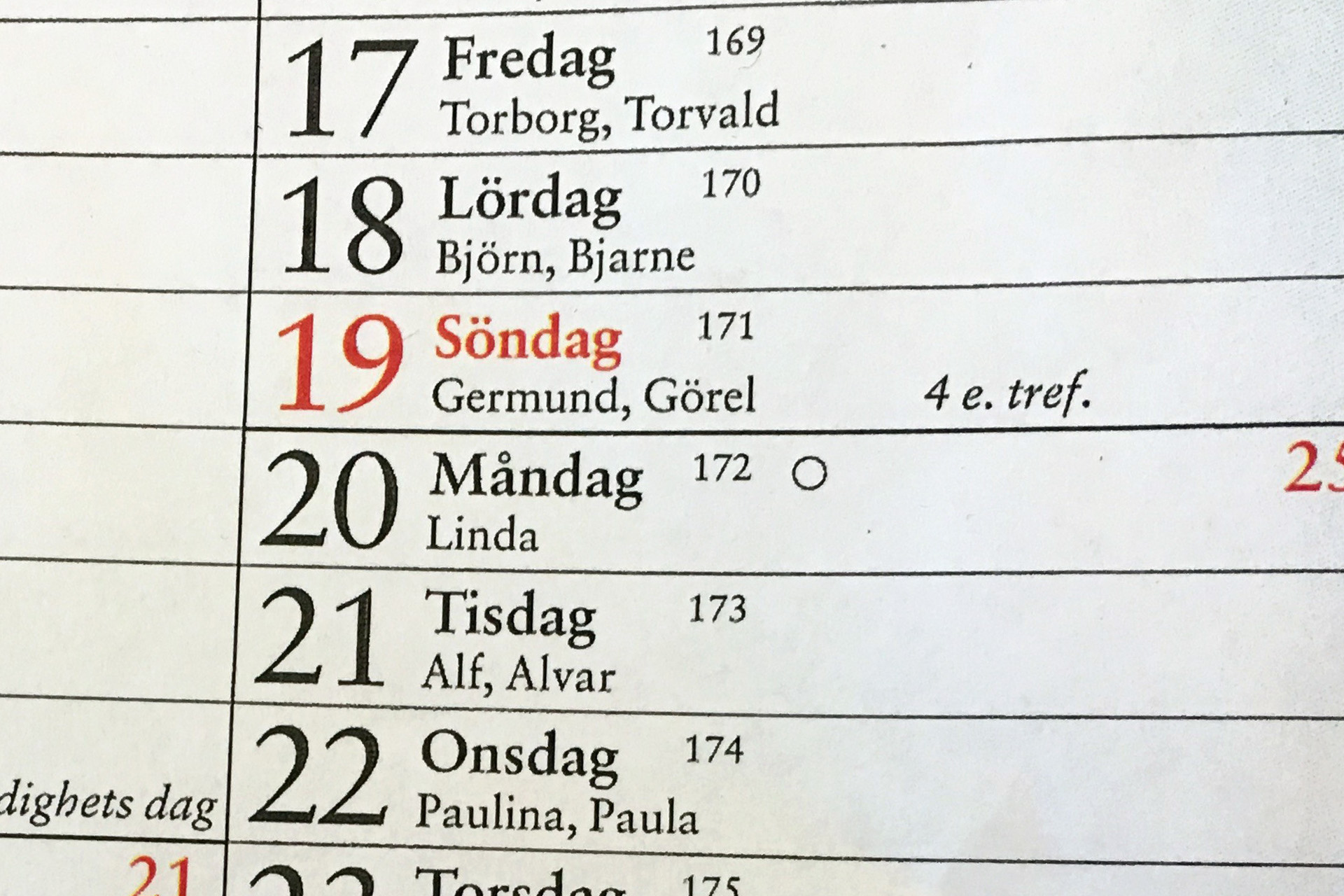 Efter pingsten kommer en lång period, över 20 söndagar, som kallas trefaldighetstiden. Den inleds på Heliga trefaldighets dag i juni och sträcker sig ända fram till november. Färgen är grön, och det symboliserar alltså växande och mognad. Trefaldighet har förstås att göra med treenigheten, det vill säga tanken att Gud är tre personer i en: Fadern, Sonen och Den Heliga Anden.