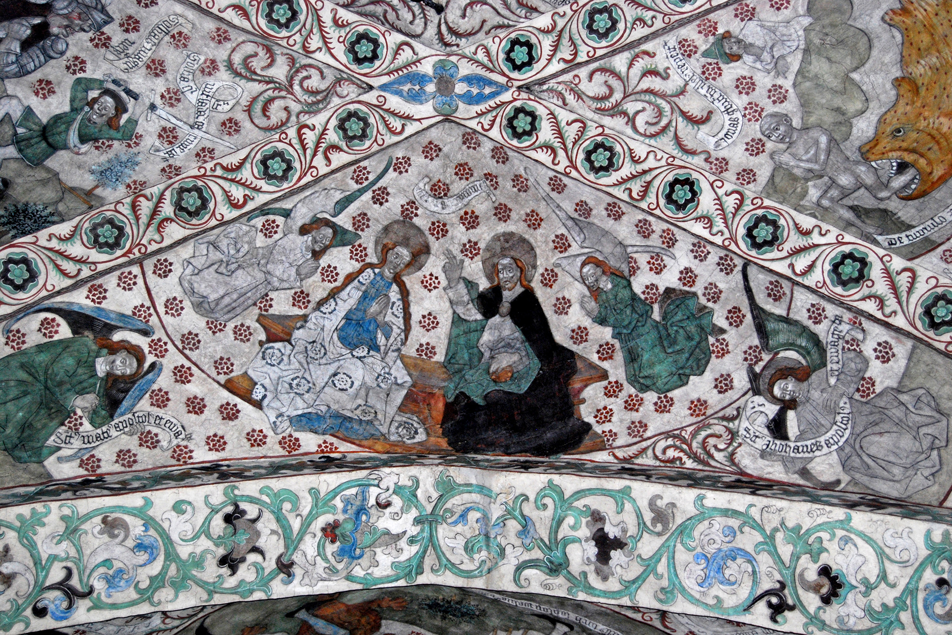 Totalt får 400 personer vistas i kyrkan och det finns ca 300 sittplatser.