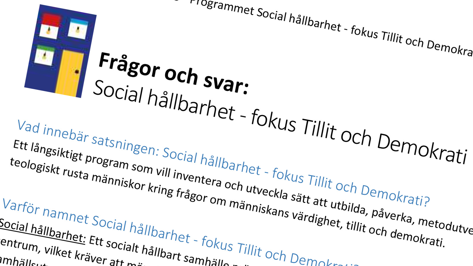 Vad är "Social hållbarhet - fokus Tillit och Demokrati"?