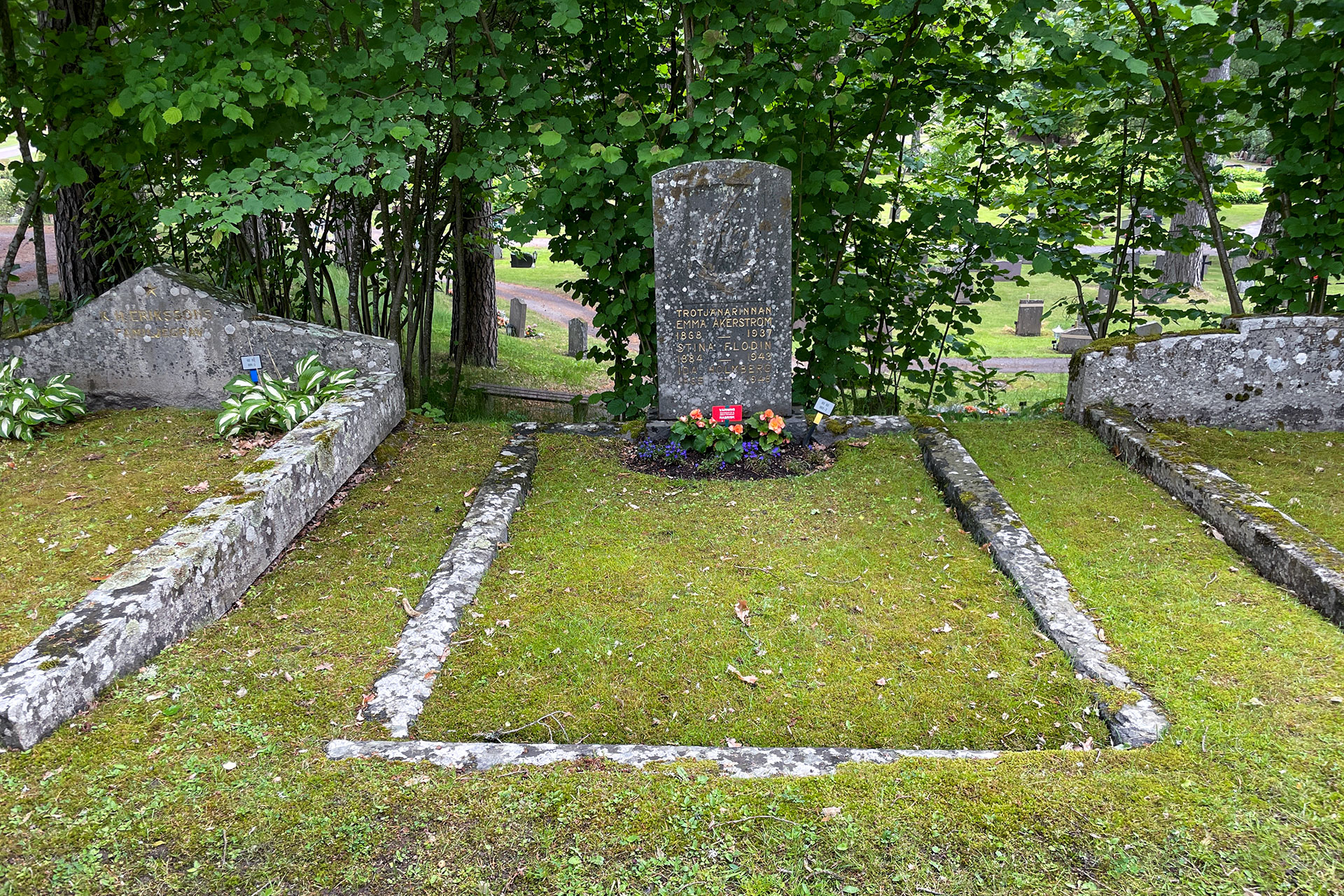 Här ligger tre kvinnor begravda. De har olika efternamn och är inte släkt, men har ändå haft starka band till varandra. Här kan du lyssna på samtalet om Emma Åkerström, eller läsa texten här nedan.