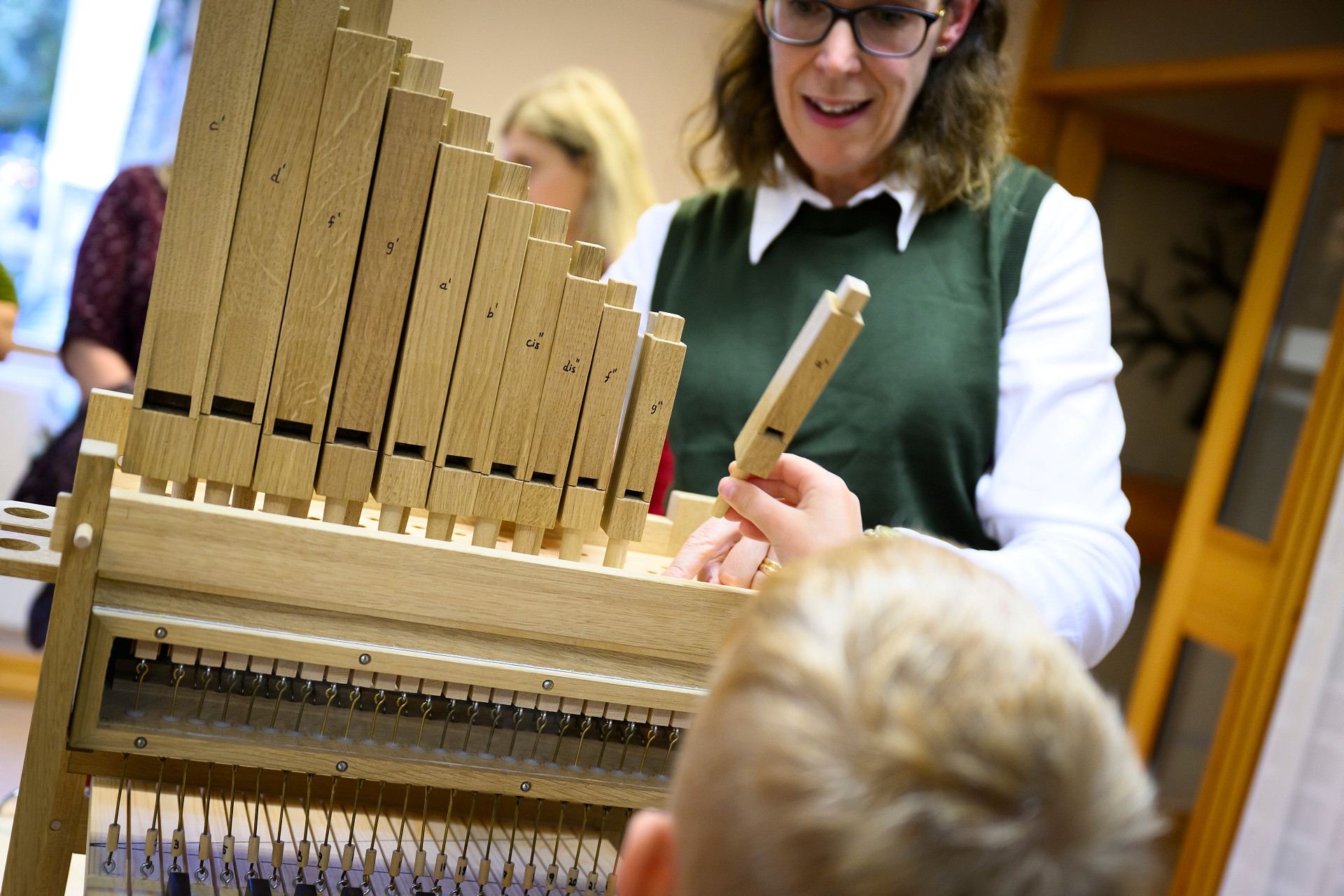 – När jag gör det med barn kommer det många kommentarer, hela tiden, och det är 110 % säkert att de börjar blåsa i piporna och jämföra toner. De är så nyfikna! Jag brukar fråga om de har sett en stor orgel. Och de frågar: ”Kommer vi att kunna spela?”